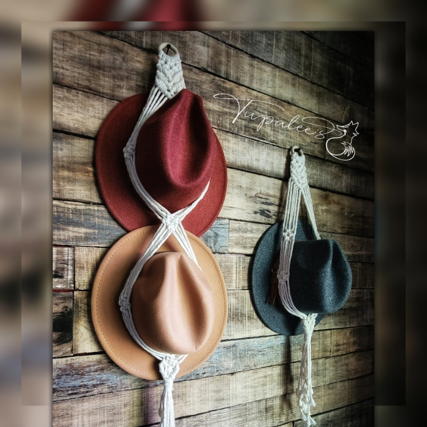 Each size is handmade with the same high-quality materials and features the same intricate knotting pattern that gives our Macrame Hat Hanger its unique and stylish look. The hangers are designed to be hung on a wall or from a hook, making them a convenient and space-saving storage solution.